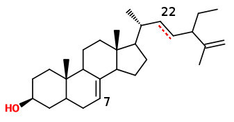 Δ-7 sterols: 24β-ethyl-5α-cholesta-7,25-diene-3β-ol and 24β-ethyl-5α-cholesta-7,22,25-triene-3β-ol (double bond C-22)